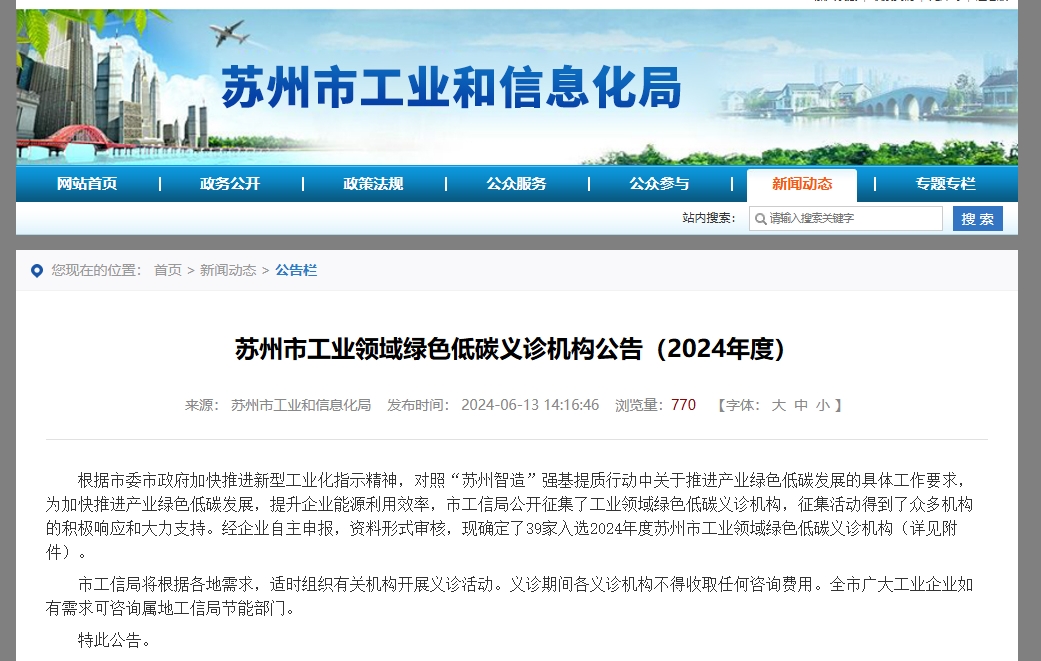 “蘇州市工業(yè)領(lǐng)域綠色低碳義診機(jī)構(gòu)”是蘇州工業(yè)和信息化局為加快推進(jìn)產(chǎn)業(yè)綠色低碳發(fā)展,提升企業(yè)能源利用效率,擇優(yōu)選取節(jié)能服務(wù)企業(yè),對下轄10區(qū)、縣的工業(yè)企業(yè)進(jìn)行節(jié)能診斷、節(jié)能培訓(xùn)的的公益性活動(dòng)。入選的企業(yè)需具有豐富的節(jié)能診斷、節(jié)能改造等經(jīng)驗(yàn);企業(yè)入選后,需對所負(fù)責(zé)區(qū)域的工業(yè)企業(yè)進(jìn)行調(diào)研、測試、診斷,從中發(fā)現(xiàn)節(jié)能潛力,出具節(jié)能方案,給出節(jié)能效益預(yù)測并進(jìn)行無償?shù)膶n}培訓(xùn)。蘇州領(lǐng)跑者以豐富的節(jié)能診斷經(jīng)驗(yàn)、節(jié)能專利技術(shù)和節(jié)能工程業(yè)績,入選了本次低碳義診機(jī)構(gòu)的名單。